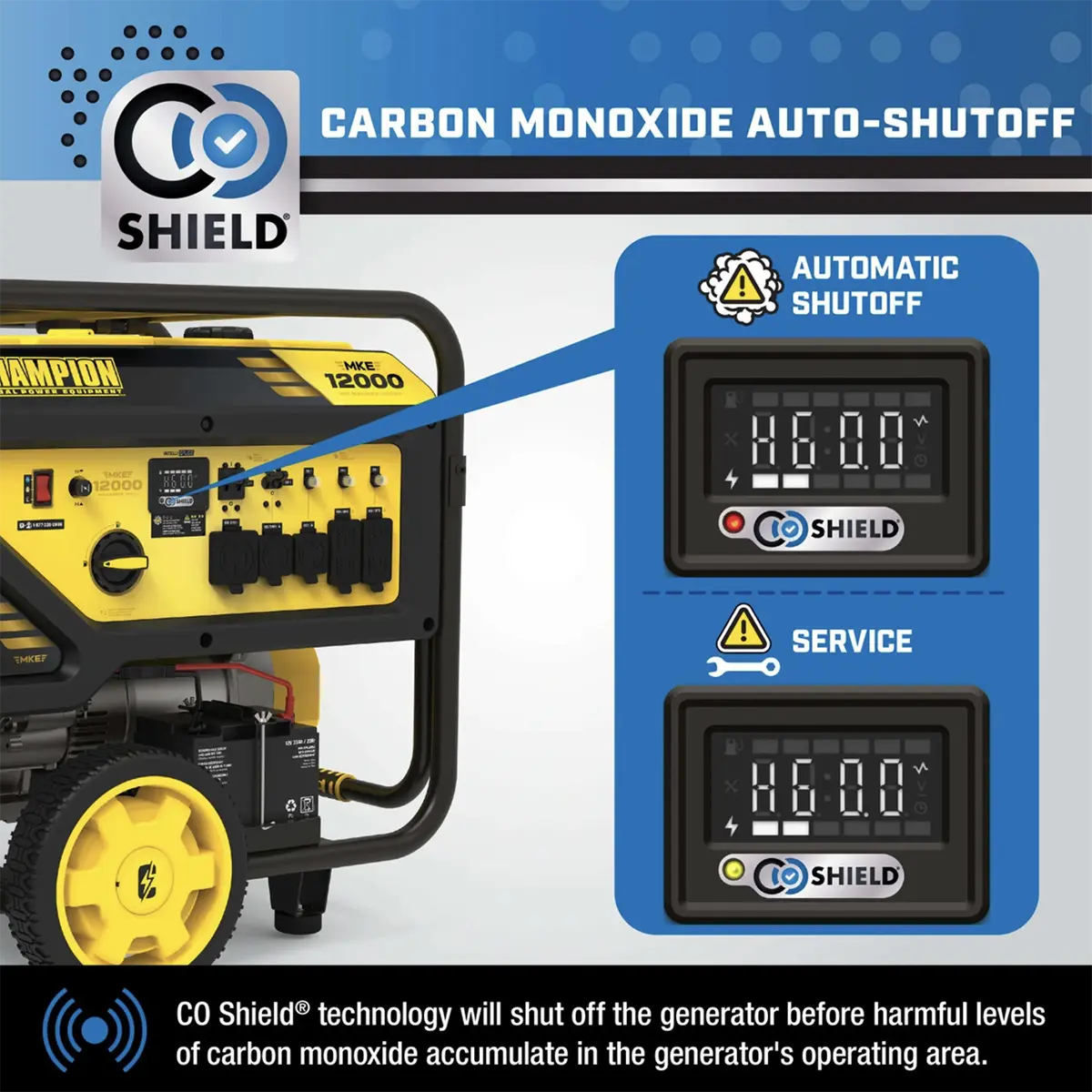 Champion 12000 Watt Portable Generator with Electric Start + CO Shield