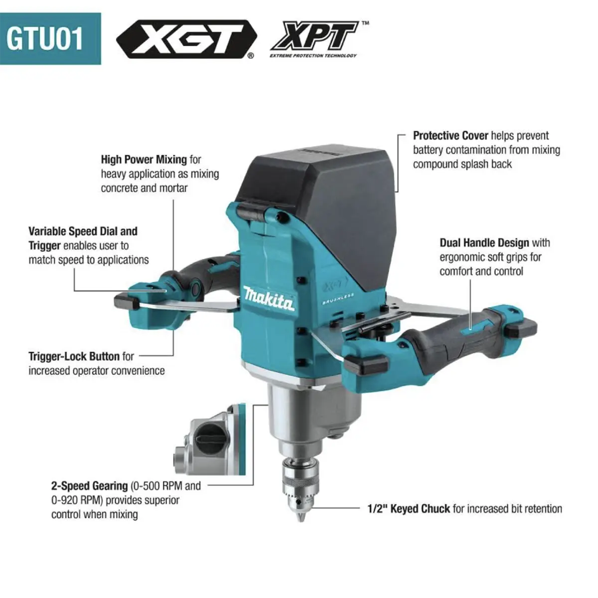 - Makita 40V XGT 1/2" Mixer (Bare Tool)