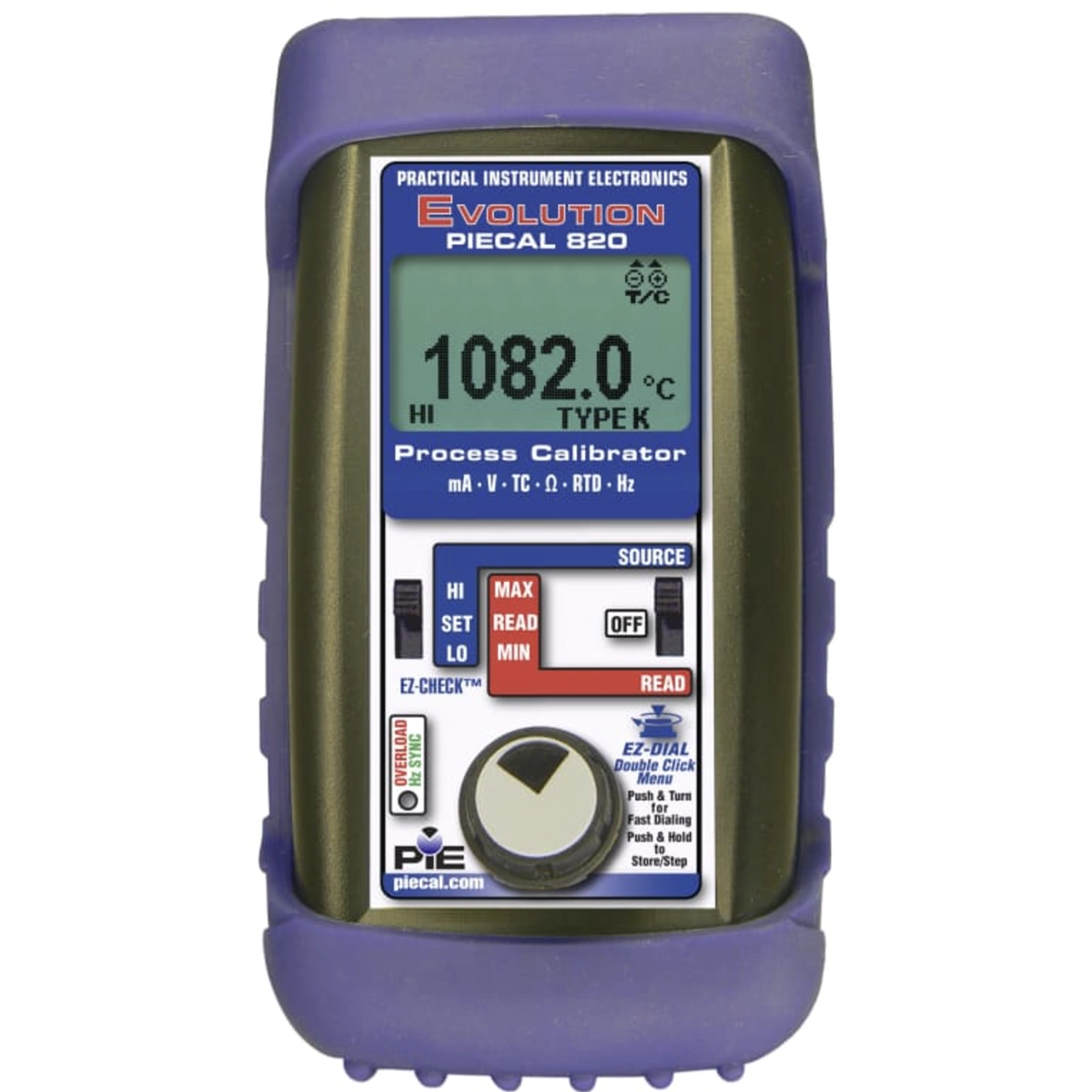 The PIECAL 820 is a compact, single-channel multifunction process calibrator that replaces multiple single-purpose tools. Designed for ease of use, it supports mA loops, voltage, frequency, RTDs, thermocouples, resistance, and continuity testing in a rugged, pocket-sized design.