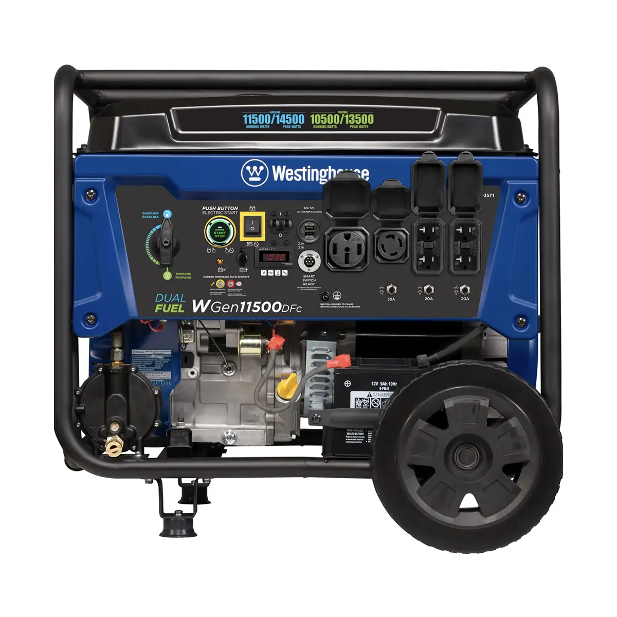 Overview Westinghouse WGen11500DFc Dual Fuel Portable Generator with CO Sensor